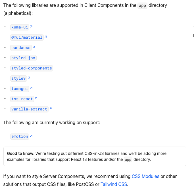 다만, 최근에 next 13 버전 사용하면서 서버컴포넌트 내에서 css 로드하는데 이슈가 좀 있는 것 같다.