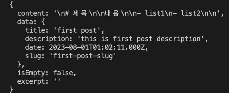 'front-matter' 라는 라이브러리도 있는데 사용법은 거의 동일하고 gray-matter가 그냥 다운로드 더 많고 설명에 빠르다고 되있어서 이거 쓰기로 함