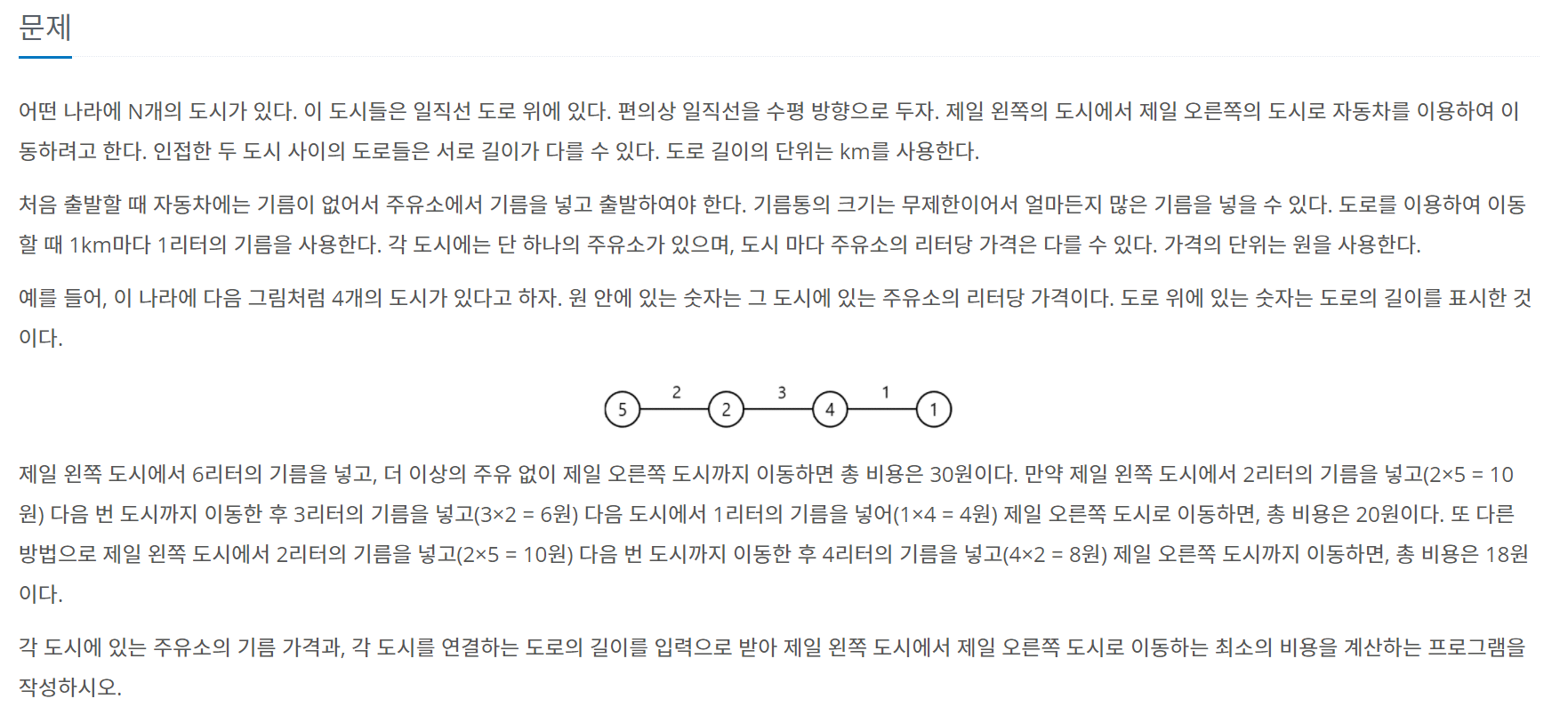https://www.acmicpc.net/problem/13305