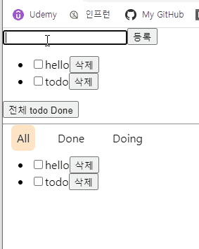 역시 헷갈릴 땐 코드를 써보는게 가장 빠른 방법이다. selector를 이해하기 위해 조금 억지로? 맞춘감이 있지만 isDone의 상태에 따라 todo-list를 필터링 하는 selector를 만들어 보고 set을 통해 모든 todo item을 isDone으로 만들 수 있도록 설정해 보았다.